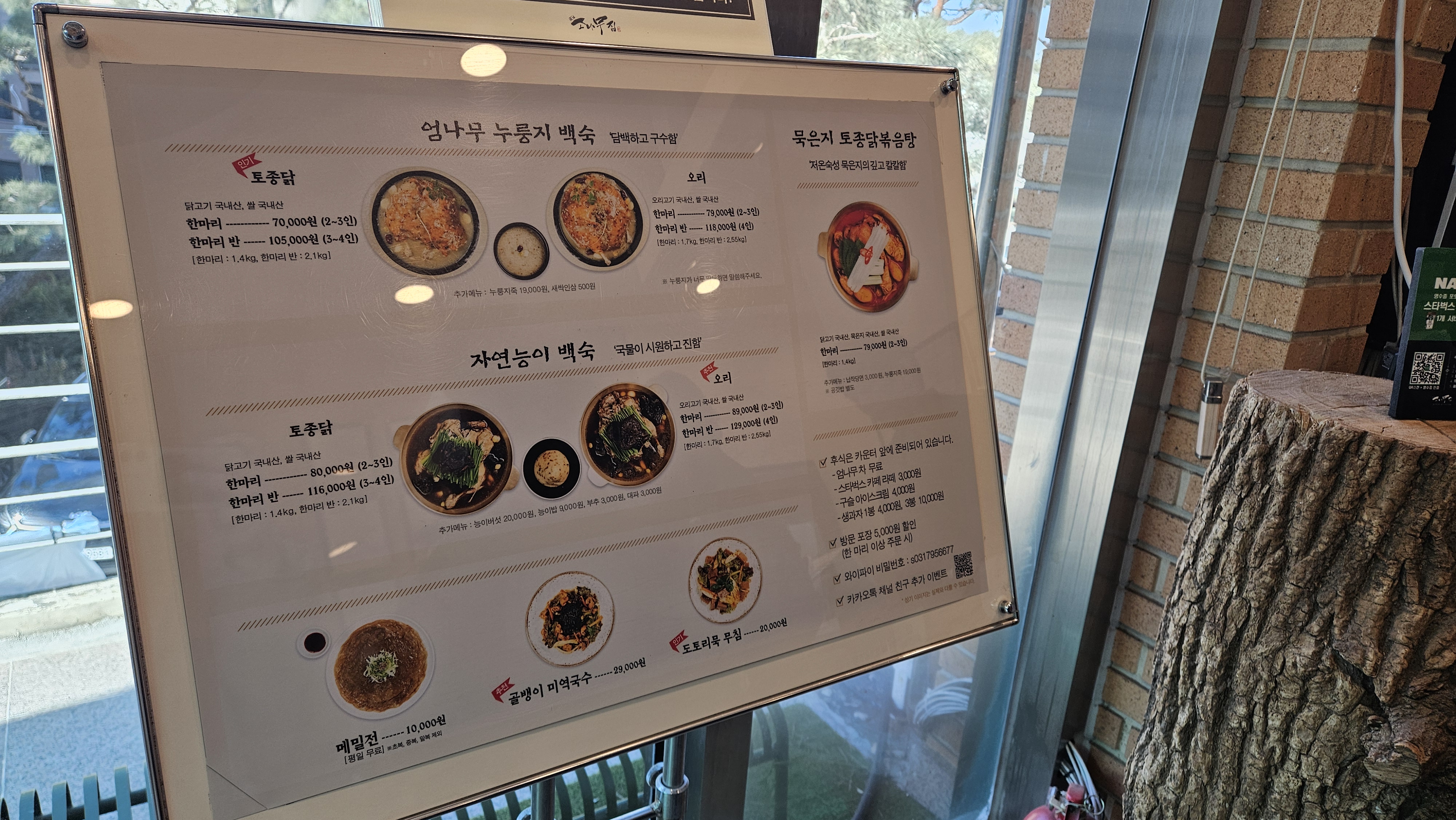 누룽지 닭백숙, 오리백숙이 있고