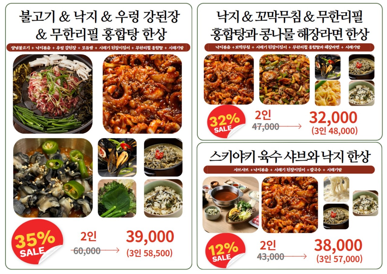 저희는 낙지&꼬막무침 메뉴를